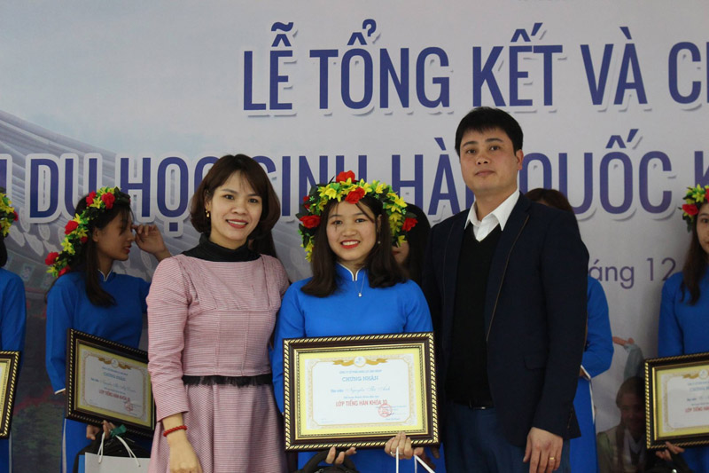 Tiếp theo chương trình là lễ trao tặng bằng khen cho các bạn Du học sinh đã có thành tích xuất sắc trong học tập. Cầm tấm bằng trong tay các bạn học sinh đều không giấu nổi sự hân hoan, tự hào bởi những nỗ lực của mình đã được ghi nhận xứng đáng.