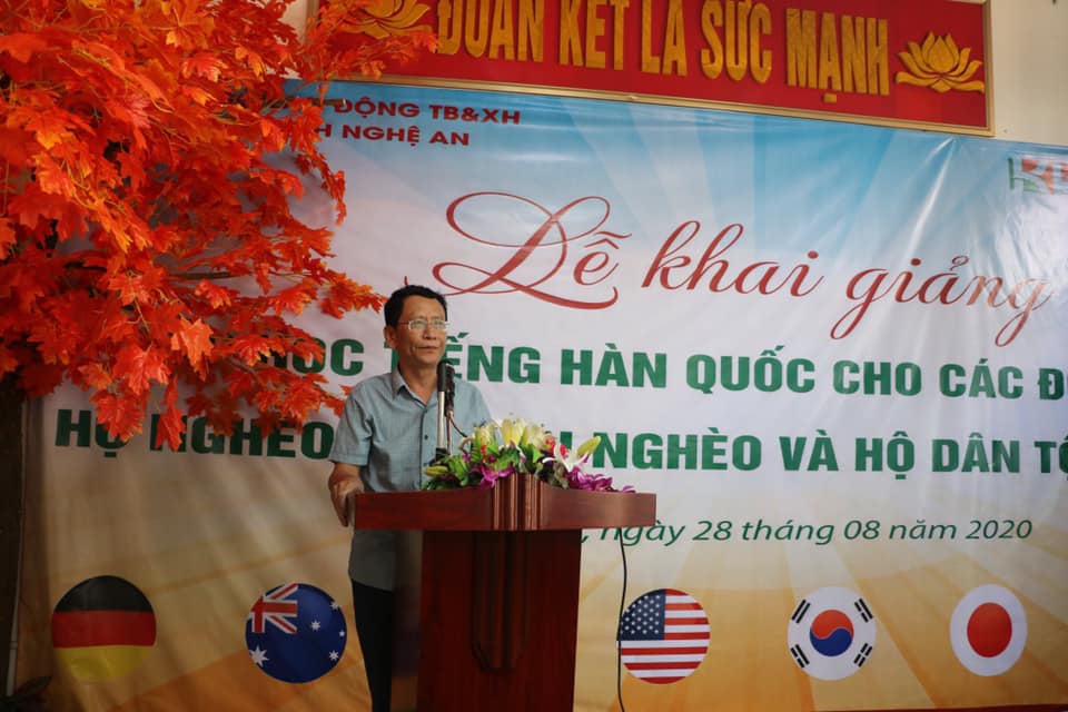 Sáng nay ngày 28/8/2020 - Hoà trong không khi vui mừng chào đón Ngày thành lập ngành Lao Động .Công ty rất vinh dự phối hợp tổ chức lễ khai giảng lớp tiếng hàn giành riêng cho các Học viên thuộc đối tượng chính sách 30a, các hộ nghèo ,cận nghèo,dân tộc thiểu số và bãi ngang theo quyết định 1722 /TTCP.