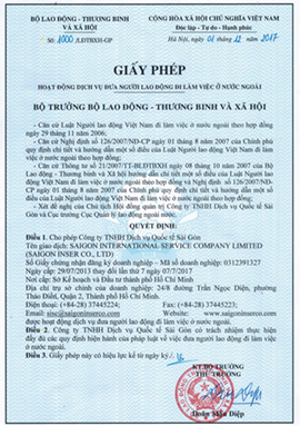 Giấy phép Hoạt động dịch vụ đưa người đi lao động tại nước ngoài